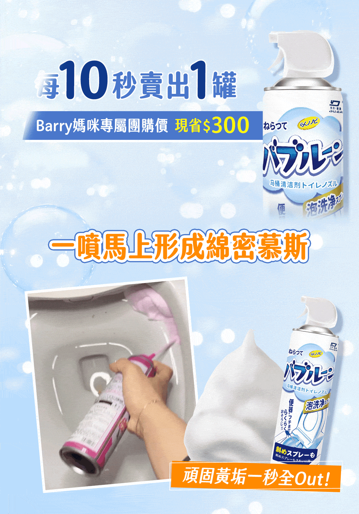 7分鐘前雪泡淨浴廁清潔慕斯 ,馬桶不刷也能亮 , 浴室清潔一瓶搞定 - 【買五送三】【MokoClean雪泡淨】8入組,團購好友分享 免運 NT$1299
