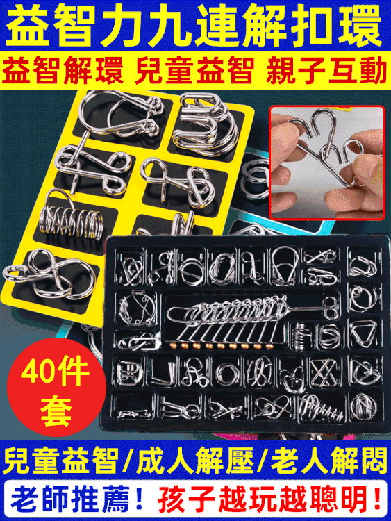 15分鐘前玩過這個孔明連環扣的孩子都比其他孩子聰明!鍛煉孩子空間想象力和邏輯思維能力! - 孔明連環扣益智40入套裝2入組 NT$1350